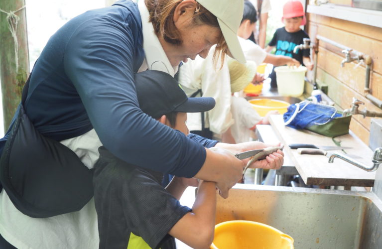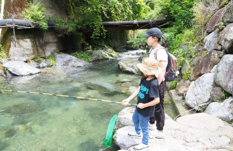 「井氷鹿の里(いひかのさと)」で、渓流での魚釣りを名人に教えてもらいましょう!自分で針にエサをつけて、釣って、内臓をとるところまで一から学びます。全部できるようになって今年の夏は渓流釣りに出かけよう!釣った魚(アマゴ・ニジマス)は炭火焼にして美味しく頂きます!