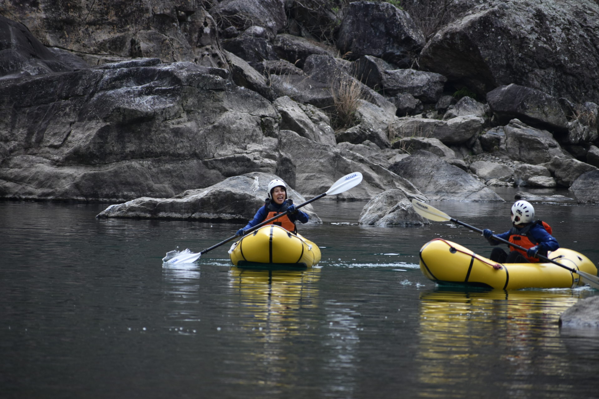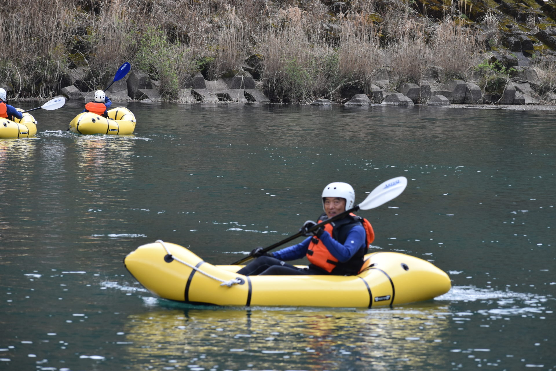 流れに立ち向かいながらパックラフトを楽しむのも良し。