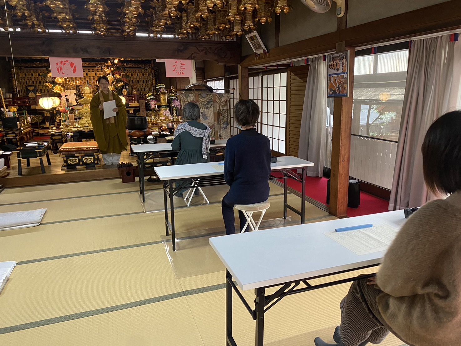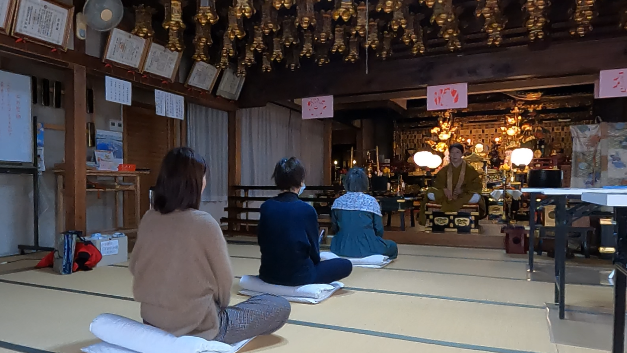 寶壽院の住職、辻田真海さんのご指導のもと、参加者の皆さんは日常から少し離れ、