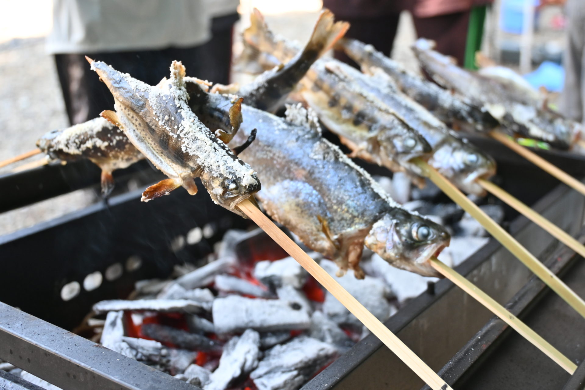 最後は、自分たちで釣った魚を炭火で塩焼きにし、自然の恵みに感謝しながら美味しくいただきました。