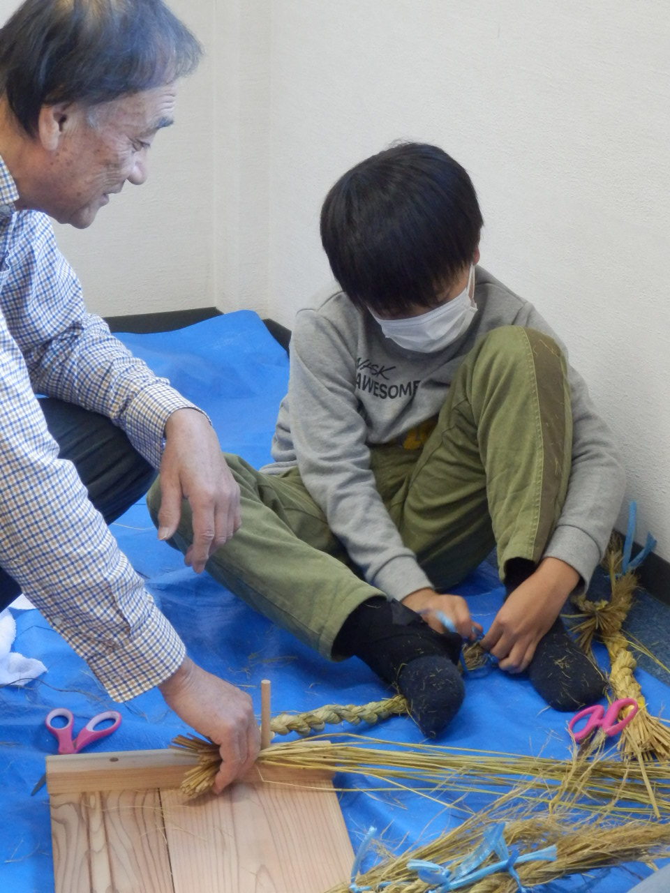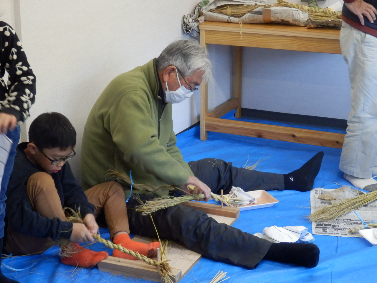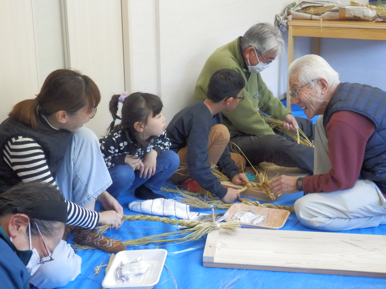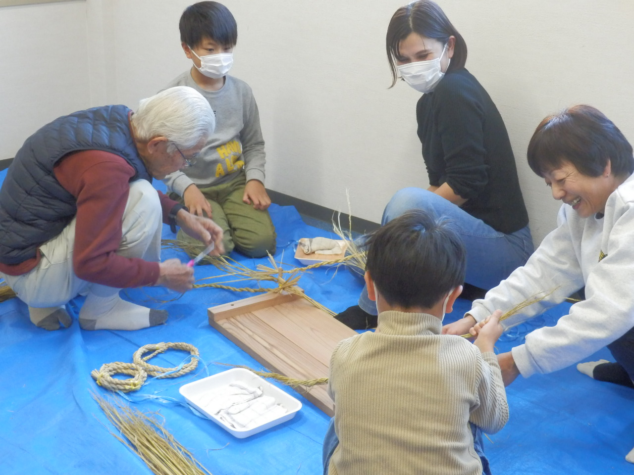 子どもたちはもちろん、大人にとっても初めての体験となるしめ縄づくりです。