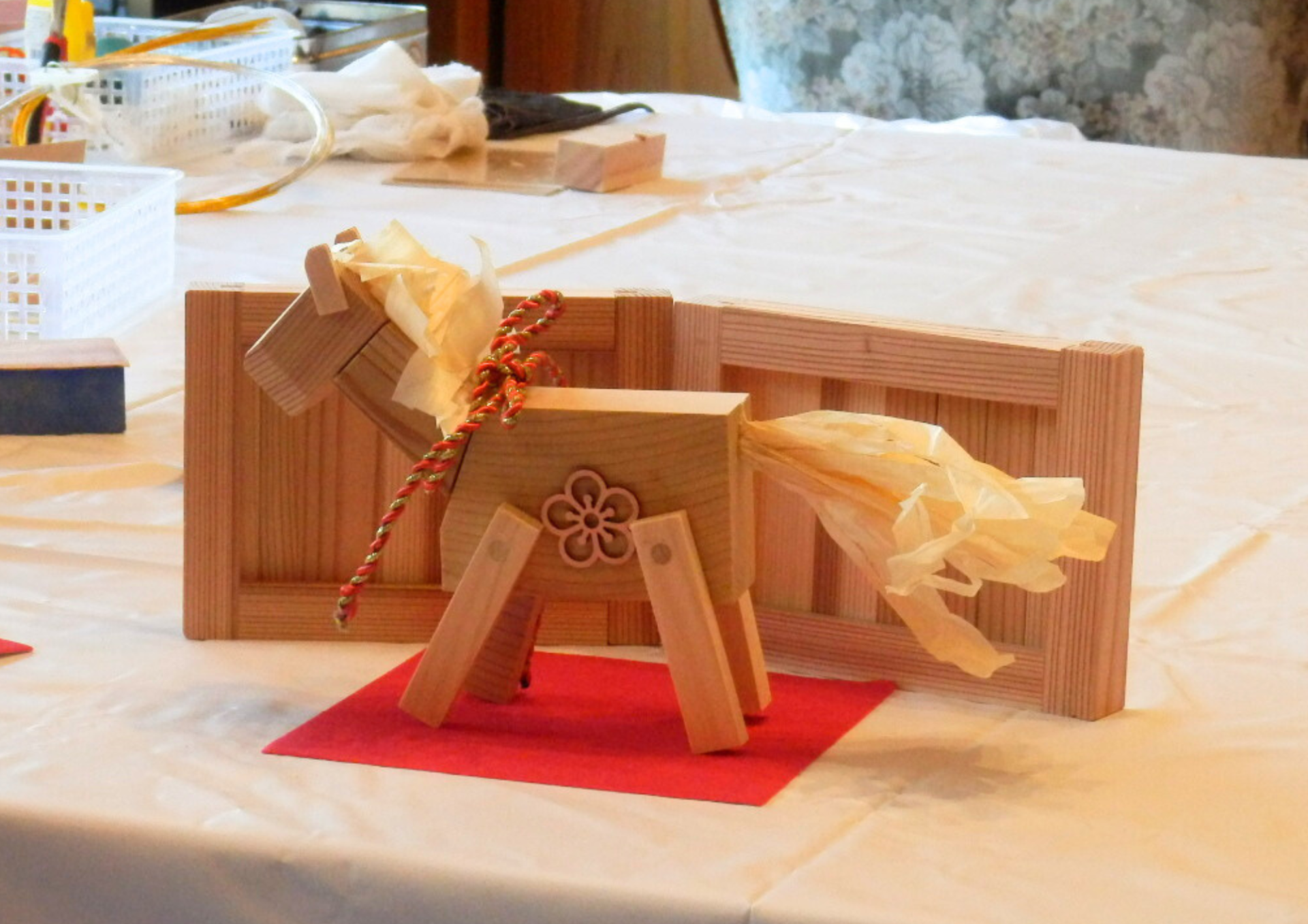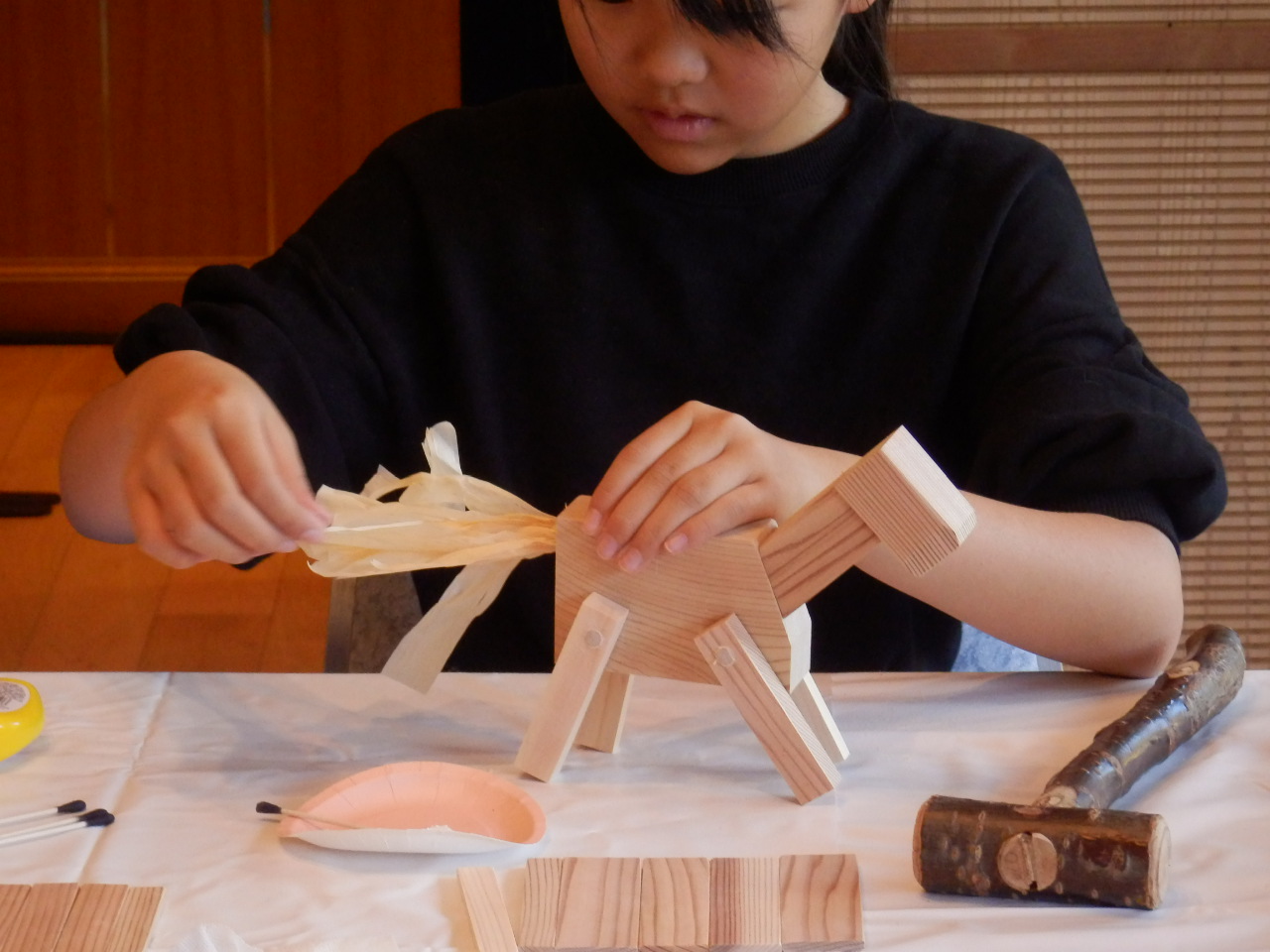 杉と桧で作られたキットを組み立て、桧のカンナくずを細くして しっぽやたてがみを付けたり、