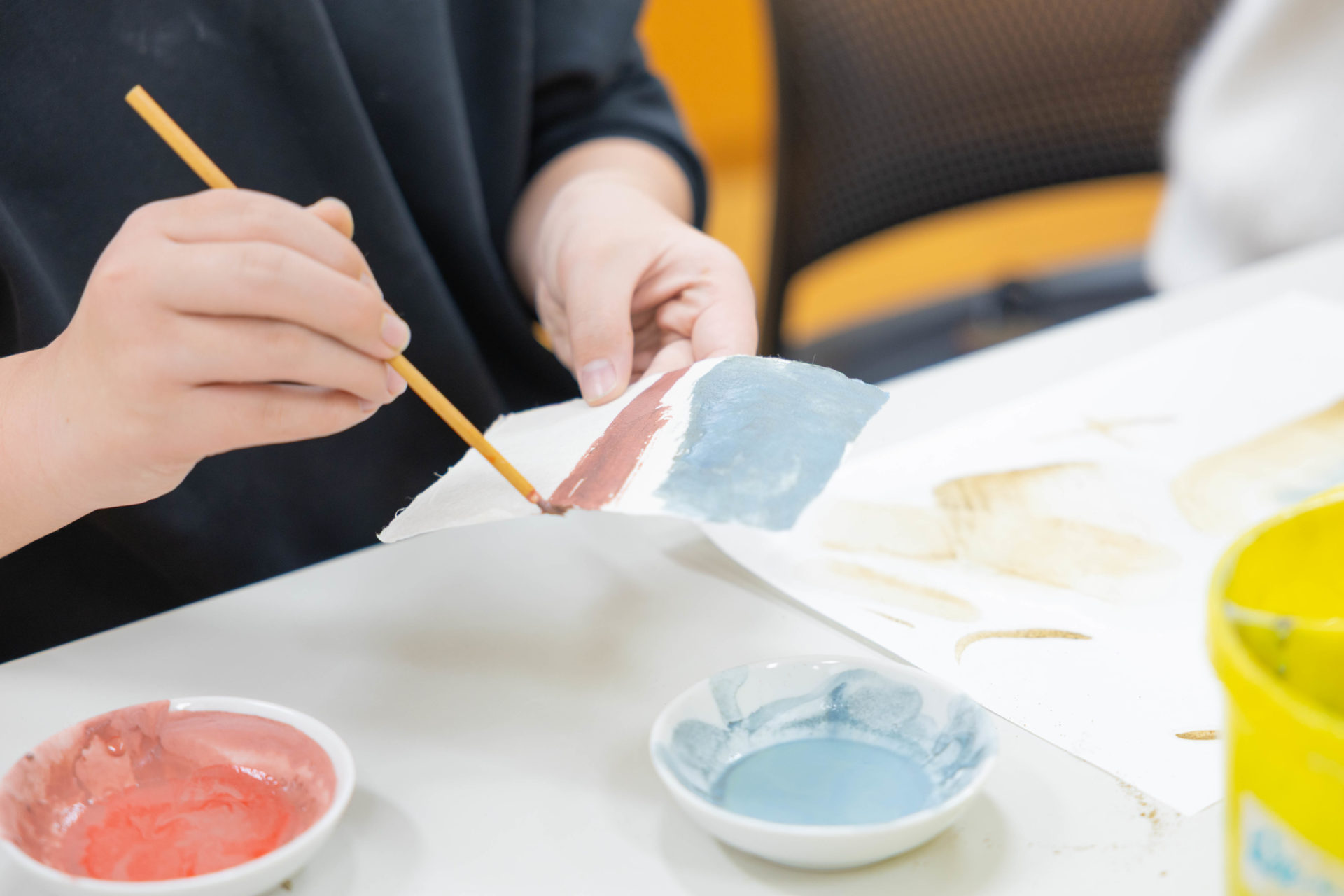 完成した3色の絵の具を使い、